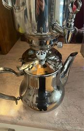 PROFESSIONALE - Samovar elettrico di alta qualità in acciaio inossidabile per preparare il tè e riscaldare e servire l'acqua con rubinetto di scarico - per occasioni private come buffet e uso professionale in sale per colazioni, ristoranti, ecc. SUFFICIENTE PER TUTTI- Il contenitore dell'acqua da 5 l e la teiera in acciaio inossidabile da 1,3 l offrono una capacità sufficiente per tutti gli ospiti, l'acqua calda può essere spillata direttamente tazza per tazza o direttamente nella teiera. PRIVATO, HOTEL & GASTRO - Alberghi , B&B . Questa macchina da tè elettrica è adatta per uso commerciale, ma è anche adatta per uso domestico o privato grazie alle sue dimensioni e alla teiera inclusa.