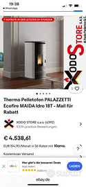Vendo termo stufa a pellet palazzetti idro 18T nuova ancora imballata comprata il 2024 pagata 3500 ma adesso costa 4.538