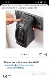 vendo causa inutilizzo tre piccoli potenti nuovi termo ventilatori portatili da 350 w, riscaldamento con ceramica termica e termostato regolabile con display digitale a led, da 15 a 32 gradi con timer e velocità della ventola per irradiare il calore e molte altre funzioni, perfetto per scaldare velocemente piccoli ambienti come cucina, camere, camper e mani e piedi ecc. ecc. Si vendono in blocco tutti e tre insieme, valore del nuovo circa 100 euro, spedizione gratuita.