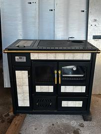 Termocucina Klover KP serie 2000 SICURO TOP a legna per riscaldamento ambiente e acqua sanitari. Piano in ghisa, maniglie in acciaio.
