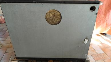 Termocucina a legna. È idrostufa: scalda l'acqua dei termosifoni. Scalda piano terra e primo piano; totale 120-140 mq. Funzionante. Dimensioni (maniglione incluso): lunghezza 120, altezza 85, profondità 69. Forno 36x49 x h 30. Secondo vano: 36x49x h 25.