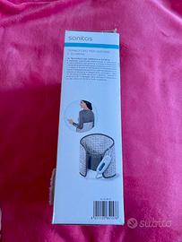 Termoforo Sanitas per addome e schiena. Modello SHK 42. Materiale superficiale extramorbido e traspirante. Calore benefico per addome e schiena. Regolabile individualmete tramite ampia fascia elastica con chiusura a strappo. 6 livelli di temperatura. Riscaldamento rapido. Regolazione elettronica della temperatura con sistema di sicurezza. Spegnimento automatico dopo ca. 90 minuti. Facile da lavare e igienico - lavabile in lavatrice a 30 °C (lavaggio extra delicato). Dimensioni: ca. 69 x 28 cm 100 W. Come nuovo.