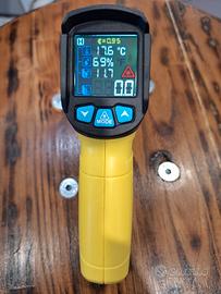 Termometro Infrarossi laser MESTEK Digitale Pirometro Temperatura Professionale -50°C~ 800°C con K Sonda Schermo LCD a Colori Regolabile Emissività Umidità per Cucina Alimenti Forno Industriale. Completo di custodia, sonda, libretto di istruzioni e scatola originale.