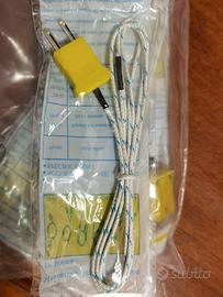 Termometro con doppia sonda di temperatura tipo K, termometro digitale elettronico, alimentato a batteria 9V (non inclusa), sono incluse 5 sonde più una sonda tes tp-k02 con manico (come da foto), termometro alte temperature, con doppia misurazione
