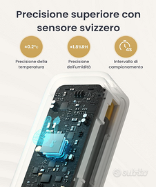 Sensibile alle variazioni di temperatura e umidità: Grazie al sensore industriale svizzero Sensirion integrato, è possibile ottenere una precisione fino a ± 1,8% RH, ± 0,2 °C, con un intervallo di campionamento rapido e accurato di 4 secondi per monitorare continuamente la temperatura e l'umidità dell'ambiente circostante.