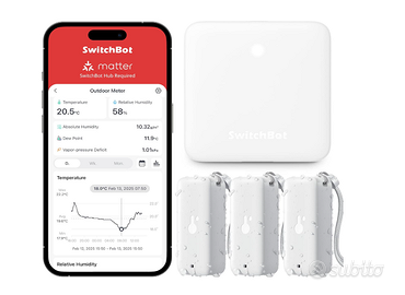 SwitchBot Termometro Wi-Fi Igrometro 3 Pezzi con Hub Mini, IP65 Impermeabile Sensore di Temperatura/Umidità Interno Esterno con Notifica App e Archiviazione Dati Gratuita, Supporta Alexa