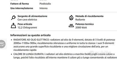 Vendo Termosifone elettrico De Longhi ad Olio serie S con massima efficienza e con maniglia e ruote pre-montate