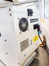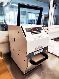 Macchina termosaldatrice da banco Compac mod.C2MCS. Pannello di controllo con programmazione digitale di temperatura e tempo di saldatura, multiformato e con la possibilità di saldare cinque diversi formati di contenitori senza cambio stampo tramite: