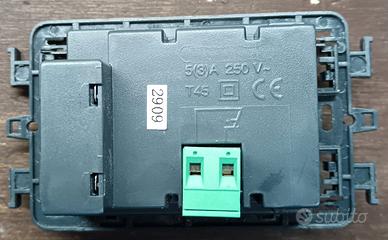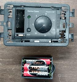 Termostato ambiente elettronico da incasso per la regolazione della temperatura in impianti di riscaldamento e condizionamento, civili e industriali. Therm C48 Fantini e Cosmi, alimentato con 3 batterie AAA ministilo.
