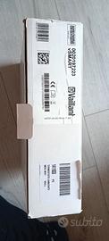 Vendo termostato ambiente Mod.Wifi vSmart Vaillant. 0020197223 Sistema di termoregolazione Wi-Fi che ti permette tramite smartphone o tablet (grazie ad una app dedicata )di controllare a distanza e gestire il tuo impianto di riscaldamento anche da remoto. Può essere installata a parete allacciandola alla rete elettrica o utilizzata con comuni pile AAA. Il termostato comunica con la caldaia tramite il protocollo Vaillant eBus. Si integra perfettamente in qualsiasi ambiente. Contenuto della confezione originale: Termostato ambiente vSMART Relè di comunicazione tra termostato, app e sistema Wi-Fi Placca ed accessori per fissaggio a muro Manuale installazione e istruzioni per l’uso.