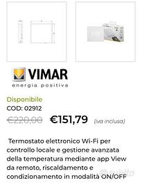 nuovo mai usato ancora nella propria confezione originale. termostato connesso Vimar 02912 WiFi, un dispositivo da parete compatibile con assistenti vocali come Alexa e Google Assistant.