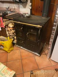 Termostufa lacunza, riscalda villetta su tre piani . Utilissima per cucinare. Con il suo piano in ghisa 80x50 Puoi contemporaneamente Cucinare diverse specialita. Forno efficientisdimo , rsggiunge temperature oltre i 250 gradi , basta deviare il percordo fumi . Con legna secca puoi fare pizze e pane , abbattendo così la bolletta a del gas .