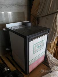 Rivestimento in ceramica decorato a mano, praticamente nuova, ampia capacita' di carico. al prezzo 1.650 euro... con 2,5 mt tubo acciaio cerificati, scarico fumi e due curve a 90 gradi.