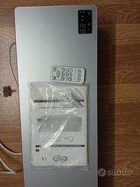 termoventilatore Argo da parete mod Chic Silver 2000 watt ,si presenta con un pannello in ceramica ,frontale in vetro con finiture riflettenti .FaIl suo dovere per riscaldare una stanza.
