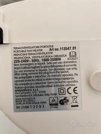 Termoventilatore portatile per bagno, funzionante
