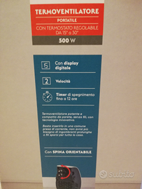 Vendo termoventilatore portatile, potenza 500W, nuovo con scatola. Euro 18