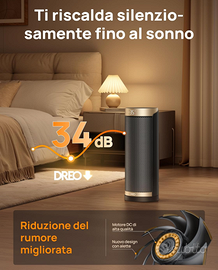 Silenzio su ogni suono: Una serie di tecnologie è stata introdotta per rendere questo riscaldatore spaziale incredibilmente silenzioso, in particolare la tecnologia ObliqueAirflow di Dreo che riduce la turbolenza dell'aria per creare un riscaldamento più fluido e silenzioso a soli 40dB, silenzioso come una biblioteca. Adatto alla camera da letto.