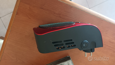 Mini termoventilatore da presa, timer 12 h, potenza 500 watt, 2 velocità, temperatura 15° - 30°, colore rosso, spegnimento automatico al raggiungimento della temperatura impostata, timer con manuale di istruzioni.