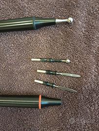 Con pedalino, punte, manipoli, alimentatore e manuale d'utilizzo.