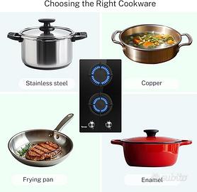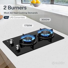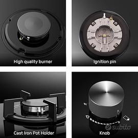 Piano cottura a gas, 30 cm piano cottura, gas naturale/propano, valvole di sicurezza, spegnimento automatico, supporto per pentole in ghisa, vetro ceramico, 4750 Watt