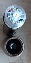 torcia luce quadra mai utilizzata. Batteria non inclusa ( al Litio 3,7 V; 2000 MA ). Illuminazione: 1 Led a 5 Watt, 130 Lumen. Autonomia: 2,5 h alta intensità, 10 h bassa intensità. Lampeggiante. Materiale: alluminio Avio alta resistenza. Lunghezza: 16,5 cm, diametro maggiore: 4,5 cm.