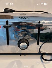 Tostapane a 4 fatte Aicok, funzionante e in buone condizioni Zone di riscaldamento separate con 2 slot ciascuna. Multifunzionale: toast, scongelamento, riscaldamento.