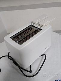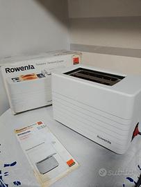 Tostapane bianco Rowenta dal design vintage. Ideale per chi cerca un elettrodomestico semplice e funzionale, senza timer. Funzionante, inevitabili segni d'uso sulle parti in metallo all'interno.