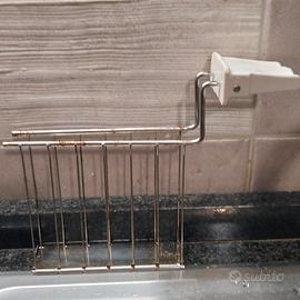 Tostapane con cassetto briciole e pinze magnetiche, ben funzionante con qualche segno dovuto all'uso.