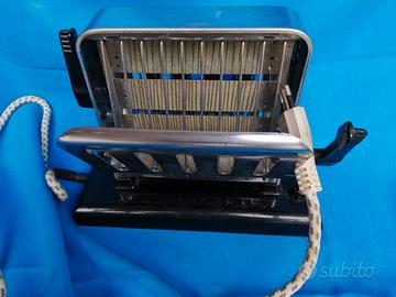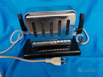 Vendo tostapane marca jura, per arrostire 2 fette contemporaneamente, con interruttore a pressione, spia di controllo rossa, manico per il portello e cassa in lamiera d'acciaio cromato.