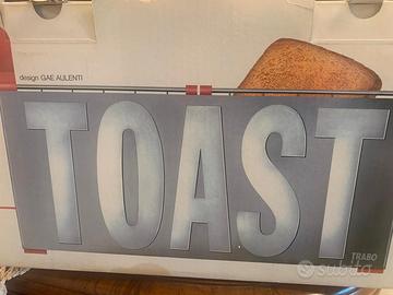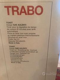 Tostapane marca Trabo toast disegno iconico acciaio inox made in Italy due pinze finitura vassoio raccogli briciole estraibile.