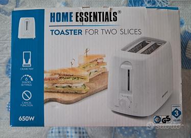 Tostapane usato solo una volta, 650W, bianco, espulsione automatica, termostato regolabile con 6 livelli di tostatura, vassoio raccogli briciole.