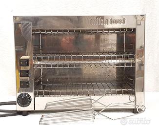 Amitek Tostiera TS3 Fornetto, Salamandra, Tostiera professionale elettrica interamente in Acciaio Inox con materiali resistenti e di lunga durata. Prima di qualsiasi domanda, leggere l'annuncio! Non rispondo a proposte di acquisto con TuttoSubito. Se vedete l'annuncio l’oggetto è disponibile. Amitek Srl Via Santo Marino, 250 47824 Poggio Torriana (RN) Italia La tostiera permette di scaldare fette di pane, ma anche di cucinare, tostare o riscaldare panini, toast, pizzette, piadine, sandwich, torte salate, pizze, brioches e crostini ma anche grigliare verdure, hamburger, wurstel e cibi precotti. Non può mancare in bar, pub e tavole calde, nei buffet delle strutture alberghiere o anche a casa. È fornita con griglia di cottura, nessuna pinza, cassetto raccoglibriciole estraibile e lavabile in lavastoviglie. Il calore viene trasmesso senza contatto con il cibo, grigliato dai 4 elementi riscaldanti in quarzo superiori e inferiori. Misure massime di ingombro: 45 x 26,5 x h 24,5 cm Struttura in acciaio inox Tubi al quarzo Timer automatico 0 ÷ 15 minuti Altezza utile 80 mm Potenza Watt 2000 - 220 V Usata molto poco, ben tenuta, perfettamente funzionante, nelle foto la si vede con tutti gli elementi accesi. (IN 6a FOTO SALAMANDRA FORNETTO MILAN TOAST Professionale 6 posti, usato funzionante, 1 pinza, 210euro non tratt.) Le immagini sono parte integrante della descrizione. Prima dell’acquisto visionate con attenzione le foto presenti nell'annuncio. Per dubbi, perplessità o informazioni, scrivete. No garanzia, nessuna restituzione. Acquisto privato. Preferirei non spedire, NON faccio consegne neanche a metà strada se non a pagamento anticipato e in zone non lontane. Comunque >>> spedisco entro 1-2 giorni lavorativi, dalla ricezione del pagamento. <<< La spedizione in Italia sarà effettuata tramite pacco “Poste delivery Standard”, tracciabile online. Prezzo non trattabile! Visibile a Bergamo, consegno a mano in zona Sombreno, spedizione per Italia + 18 euro.
