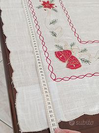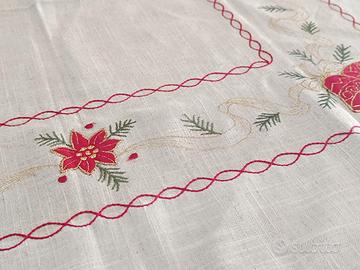 Tovaglia decorativa natalizia quadrata con decorazioni natalizie, circa 83 cm per lato. Dettagli e misure in foto, per maggiori informazioni scrivetemi.