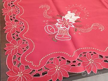 Tovaglia decorativa natalizia quadrata con decorazioni natalizie, circa 86 cm per lato. Dettagli e misure in foto, per maggiori informazioni scrivetemi.
