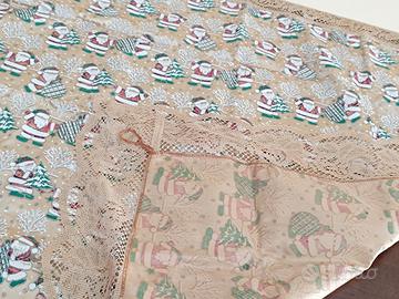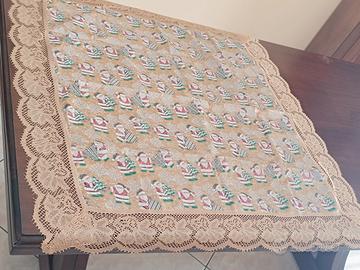 Tovaglia decorativa natalizia quadrata con decorazioni natalizie, circa 92 cm per lato. Dettagli e misure in foto, per maggiori informazioni scrivetemi.