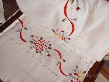 Tovaglia natalizia in cotone, con ricami a tema x18.