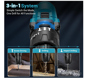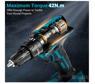 Trapano a Percussione con 3 Modalità Coppia di 42N.m】Il trapano avvitatore a batteria ha 3 modalità di lavoro: avvitamento, perforazione e perforazione a percussione. La funzione martello, che può aumentare notevolmente l'efficienza del tuo lavoro. Con una coppia massima di 42Nm, il trapano combinato può facilmente soddisfare un'ampia gamma di esigenze di perforazione e avvitamento di viti su legno, metallo e plastica 【2 Velocità Variabili e Frizione a 25 Posizioni】Il trapano elettrico può essere impostato per funzionare in due diverse gamme di velocità (0-550 RPM, 0-1850 RPM), Questo Trapano Avvitatore Batteria sprofondisce senza sforzo attraverso materiali diversi. così avrai sempre la potenza di cui hai bisogno. Inoltre, l'avvitatore a impulsi cordless ha 25 posizioni di coppia per la selezione del 【Durevole Batterie agli ioni di Litio 2,0Ah e Indicatore di Batteria】 Con batteria di litio di litio a grande capacità 2,0A per il avvitatore elettrico, non è necessario preoccuparsi di esaurire l'energia durante il progetto fai-da-te. Ci vogliono 90 minuti per caricare completamente la batteria. Il nostro Avvitatore a Batteria con Batterie è stato anche costruito in una spia di potenza, che ti ricorda lo stato della batteria 【Mandrino Rapido e Facile da Usare】 Il mandrino autobloccante da 3/8 "(10 mm) ti aiuta a cambiare rapidamente le punte. Il cacciavite elettrico ti offre una presa comoda ed equilibrata e morbida. Luce a LED integrata: situata nella parte inferiore del manico, la LED si accende automaticamente quando si preme il grilletto, garantendo una visibilità chiara in ambienti bui o ristretti – l'oscurità non è più un ostacolo al lavoro. La clip da cintura ti offre molta più comodità e lo strumento sempre a portata di mano e pronto all'uso Enhanced Product Description & Images 【24Pcs Accessori Per Punte da Trapano】Non c'è bisogno di andare fuori per acquistare altre punte, il nostro kit trapano elettrico a batteria / driver con 24Pcs accessori: 1 Batteria al
