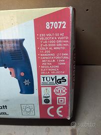 Vendo trapano Yamato 230v 50hz Doppia velocità: 1° 0/1000 rpm 2° 0/3000 rpm Funzione battente: 11.200 bpm Mandrino massimo 13mm Utilizzato credo 3 volte, forse 2