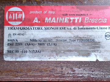 Trasformatore in ottime condizioni ricuperato da una vecchia pressa industriale. funzionamento primario 220 / 380 V. secondario 55 / 110 V. da 800VA... (vedi targhetta per dati più dettagliati ). non spedisco solo ritiro a mano...