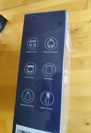 Design elegante in metallo nero e rifiniture in rilievo, include strumenti per rifinire barba, capelli, sopracciglia e corpo.