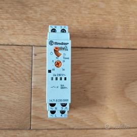 Vendo senza scatola ma praticamente nuovi, smontati da quadro elettrico mai entrato in funzione: - timer multifunzione FINDER modello 14.71.8.230 (luce a tempo riarmabile, luce fissa, luce a tempo riarmabile + funzione pulizie: un impulso > 5 sec provoca luce accesa per 60 minuti). Disponibile scatola originale. - timer multifunzione FINDER modello 14.01.8.230 (luce a tempo riarmabile, luce a tempo riarmabile + preavviso spegnimento, relè ad impulsi temporizzato, relè ad impulsi riarmabile + preavviso spegnimento, luce fissa, luce a tempo riarmabile + pulizia scale: un impulso > 5 sec provoca luce accesa per 60 minuti, luce a tempo riarmabile + preavviso spegnimento + pulizia scale, relè passo passo) - timer multifunzione PERRY modello 1T 1067 (luce a tempo riarmabile + pulizia scale, luce a tempo riarmabile + preavviso spegnimento + pulizia scale, relè ad impulsi temporizzato, relè ad impulsi temporizzato con avviso di spegnimento, relè ad impulsi passo-passo) I temporizzatori asono alimentati a 230V e sono adatti per l'aggancio su guida din. La spedizione comprende i manuali d'uso in formato cartaceo.