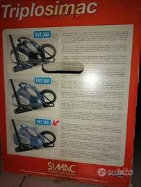 Quest'apparecchio sfrutta la potenza del vapore come ausilio nelle quotidiane operazioni di pulizia della casa, anche le più ostinate (piastrelle, doccia ecc...), contribuisce a ridurre l'inquinamento ambientale derivante dalla dispersione di detergenti chimici assicurando una maggiore igiene delle superfici domestiche e delle tappezzerie. Triplosimac, oltre ad aspirare polvere e liquidi, è un potente pulitore a vapore con sistema di filtrazione ad acqua.