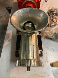 Tritacarne - insaccatrice “Tre spade 32” manuale completa di motore da 1Hp , 2 coltelli , 3 ghiere e 2 imbuto uno in plastica e uno in metallo