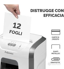 DISTRUZIONE SICURA: il distruggidocumenti a frammento FS-12C può distruggere 12 fogli per volta in frammenti di 4 x 34 mm (DIN P-4), così puoi essere certo che i tuoi documenti riservati siano stati distrutti in modo sicuro