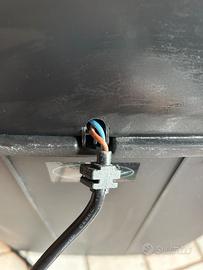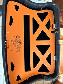 La parte in metallo grigio ha alcuni segni di usura (piccoli graffi, vedi foto), il supporto sinistro della parte arancione è assente e i fili posteriori fuoriescono un po (come foto).