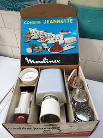 tritacarne e tritaverdure elettrico vintage Moulinex "Combiné Jeannette".Questo elettrodomestico multifunzione, probabilmente risalente agli anni '60, permette di: