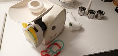 Offro tritacarne Moulinex modello HV4 ME 411 colore bianco potenza 1200W completo degli accessori per tritacarne con lama auto affilante con 2 griglie con fori di 4,7 mm e 7,5 mm, spremiagrumi, accessorio per hamburger in tre differenti formati (steak Moulding system) , accessorio per polpette, accessorio per salcicce, rullo taglia verdure a fette , rullo per grattugiato spesso e rullo per grattugiato fine. Alloggiamento intelligente per alcuni accessori. Praticamente tutto nuovo in quanto è stato utilizzato solo 2 volte il tritacarne. Nella vendita è compreso il manuale istruzioni. Non disponibile confezione originale. L’oggetto è visibile previo accordo presso il mio domicilio. Vendita fra privati con formula visto e piaciuto senza garanzia e restituzione. Pagamento in contanti. Astenersi perditempo.