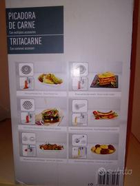 Tritacarne con numerosi accessori come : disco forato fine , medio e grosso / inserto per polpette , salsicce e biscotti. Mai usato .