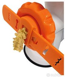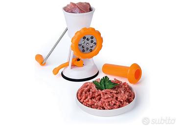 Tritacarne multiuso EXCELSA , materiali ABS e lama in acciaio inossidabile con 2 trafile in acciaio inox con diverse grandezze dei fori . Misure: 13x11xh.19. Ideale per tritare carne, pesce , verdure, pan grattato , noci e formaggio stagionato .Incluso inserto per forma biscotti. Dotato di ventosa. Colore bianco/arancio. Lavabile in lavastoviglie. NUOVO