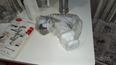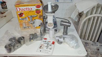 Duetto Plus quasi nuovo usato una sola volta per provarlo e poi non più usato. Tritacarne, Passa pomodoro, grattugia ed altro, completa di molti accessori alcune ancona incartati. Il prezzo si intende con spedizione in Italia compresa, ritiro in loca sconto ulteriore. Come in foto con scatola originale